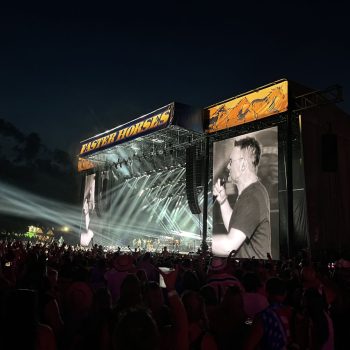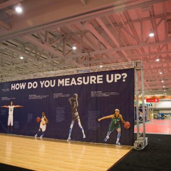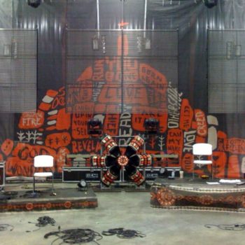 Stage sets provide a unique opportunity to communicate to your guests. Vinyl mesh is our most popular material for this application. Mesh is a lightweight, porous material that allows up to 70% airflow. It is ideal for large graphics and flybay speaker coverage. Our design and engineering team can customize soft goods graphics to fit your rigging too.