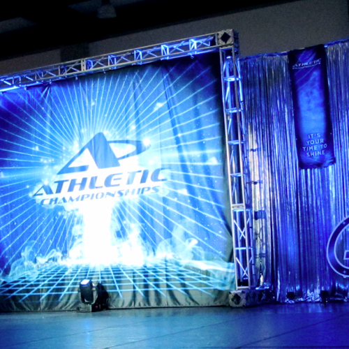 Our large format direct-to-fabric printing process provides vibrant colors that last. We can produce everything from trade show displays and media backdrops to event/stage graphics, custom flags and more. Our most popular fabric materials are certified to meet the NFPA-701 flame retardance standard.