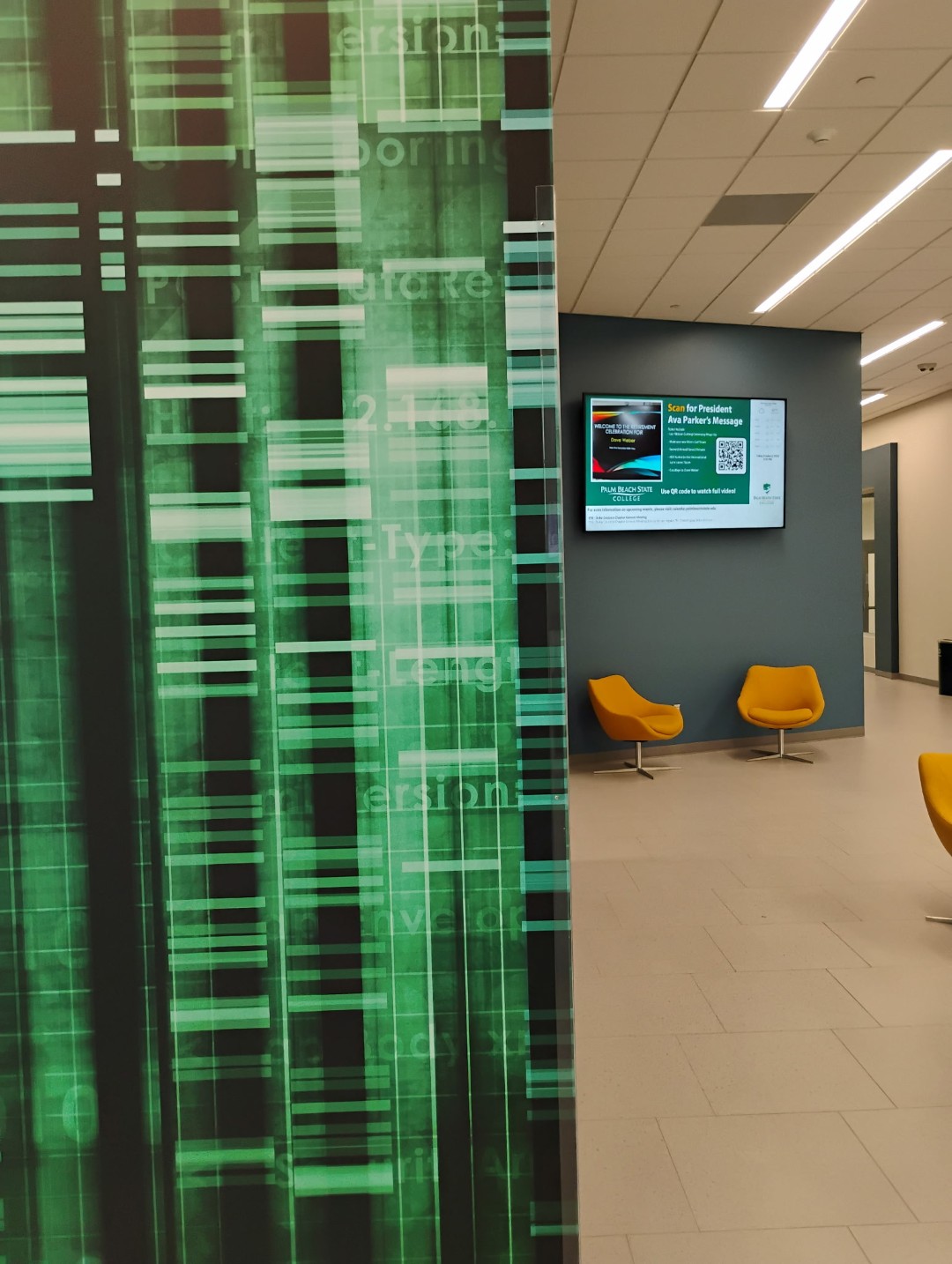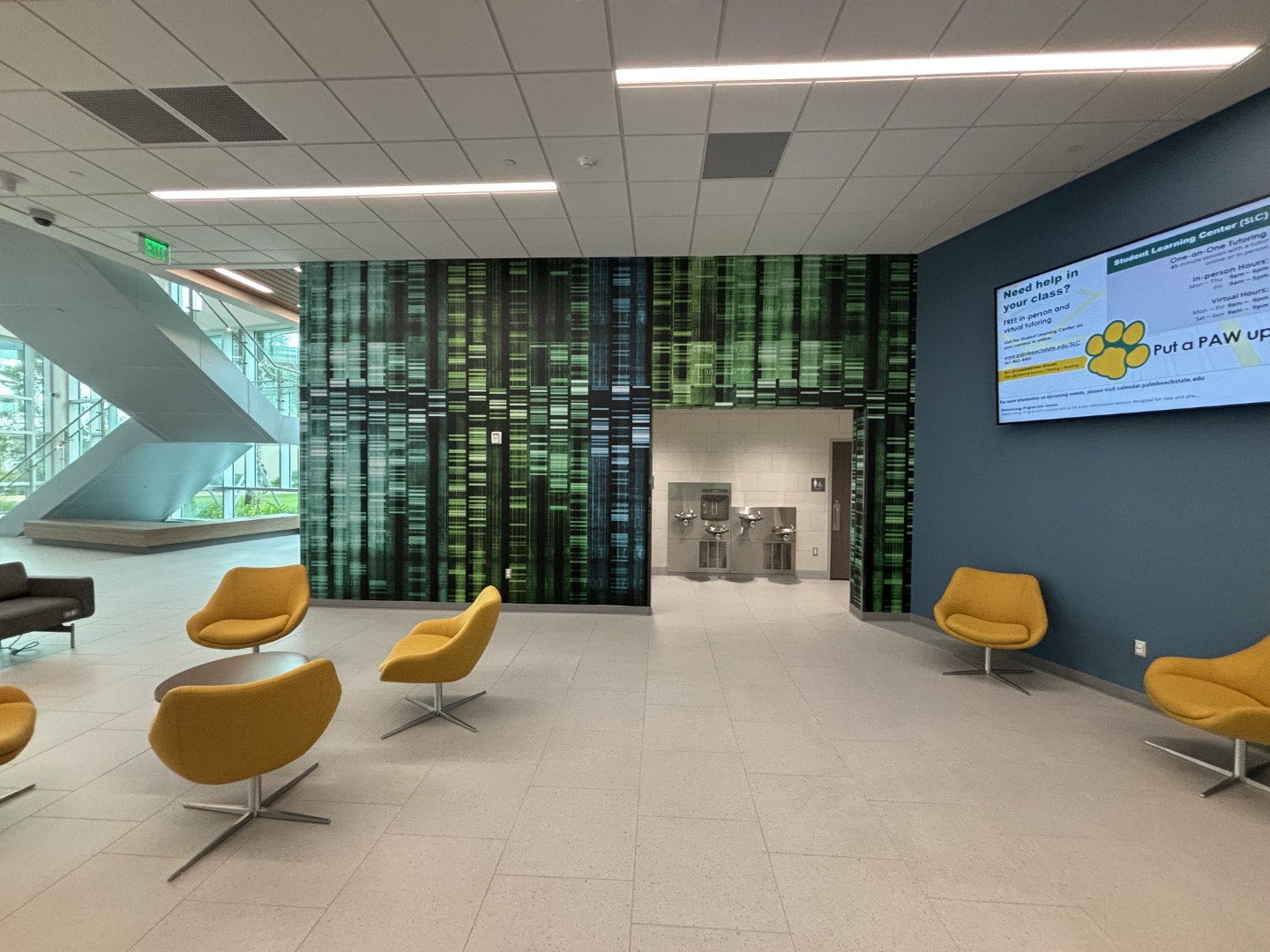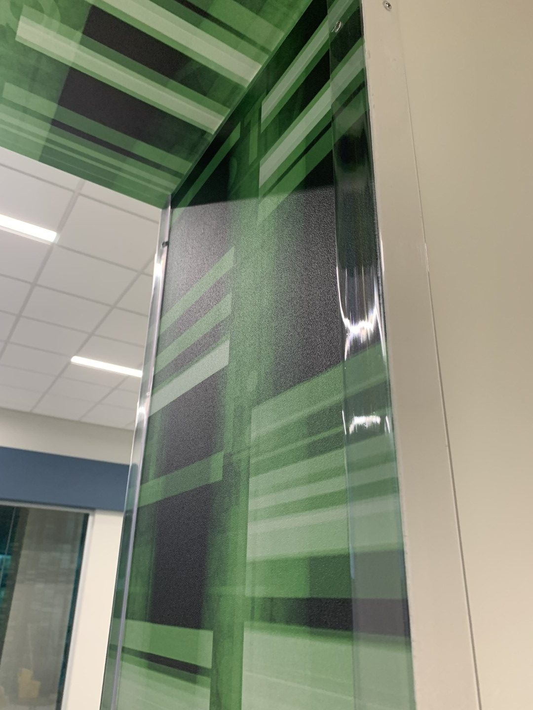 The finishing touch was clear corner guards on all the wall meeting points to ensure longevity and durability in a high touch traffic area – like a busy college campus.